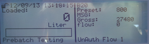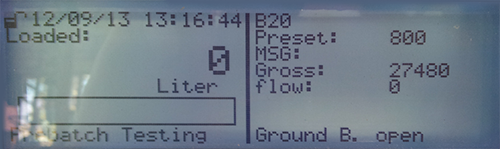 6、當批控器裝車量達到設定量后,自動關閥停止裝車;如果過程中需要停止裝車,點擊”Stop”鍵一次,暫停裝車;連續點擊”Stop”鍵兩次,則停止裝車。