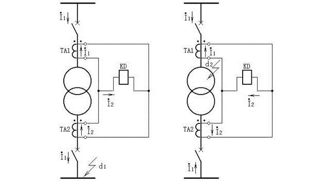 當(dāng)變壓器內(nèi)部,如圖20b中d2點(diǎn)故障時,流入差動繼電器的電流為變壓器兩側(cè)流向短路點(diǎn)的短路電流(二次值)之和。