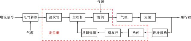 一個(gè)位置控制器(伺服機(jī)構(gòu)),它在機(jī)械上被連接到終端控制元件或其執(zhí)行機(jī)構(gòu)的一個(gè)運(yùn)動(dòng)部件上,自動(dòng)調(diào)整向執(zhí)行機(jī)構(gòu)的輸出,以保持一個(gè)需要的與輸入信號(hào)成比例的閥門位置。