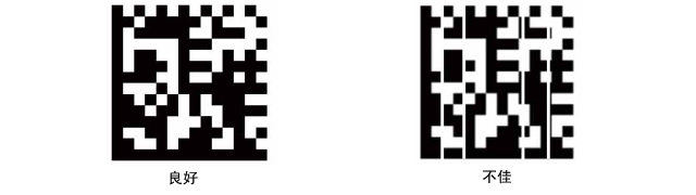 使用標(biāo)簽打印機(jī)時(shí):標(biāo)簽打印機(jī)中的熱敏打印機(jī)常用于二維碼的打印。我們可以看到右側(cè)的DataMatrix碼(不佳)中有白色豎線顯示。這種現(xiàn)象叫做點(diǎn)缺失,通常是由于打印頭上有灰塵或打印頭老化導(dǎo)致。