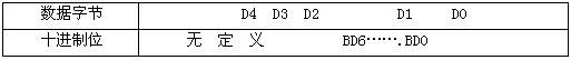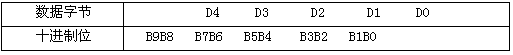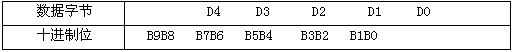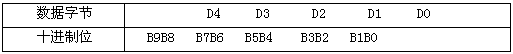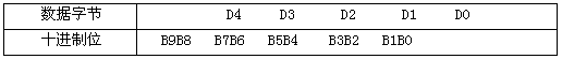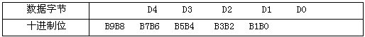 數據段的D4、D3、D2、D1、D0五個字節組成十位流量測量數據,每字節表示兩位十進制數,每字節表示的十進制數值范圍:0-99。